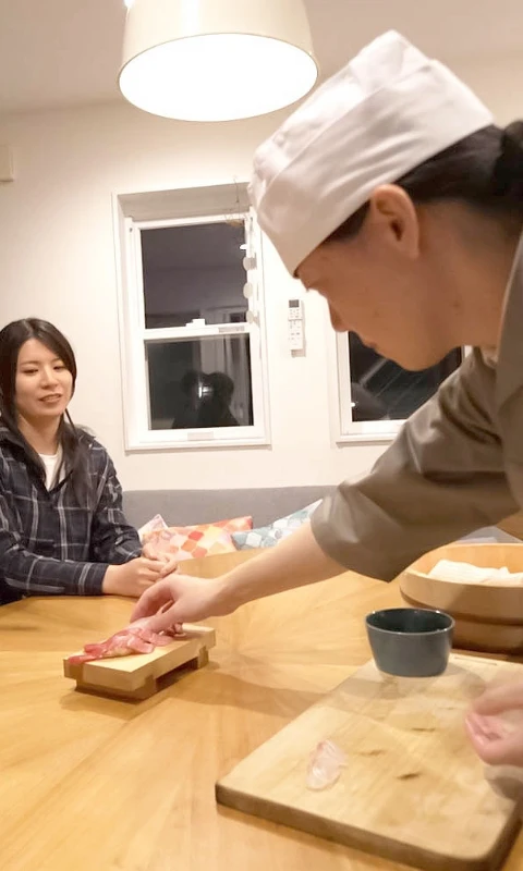元築地の江戸前寿司職人が、目の前で寿司を握ってくれる出張サービスです。ご要望に応じて寿司握りの体験やお寿司に合わせたお酒のペアリングも可能です。
