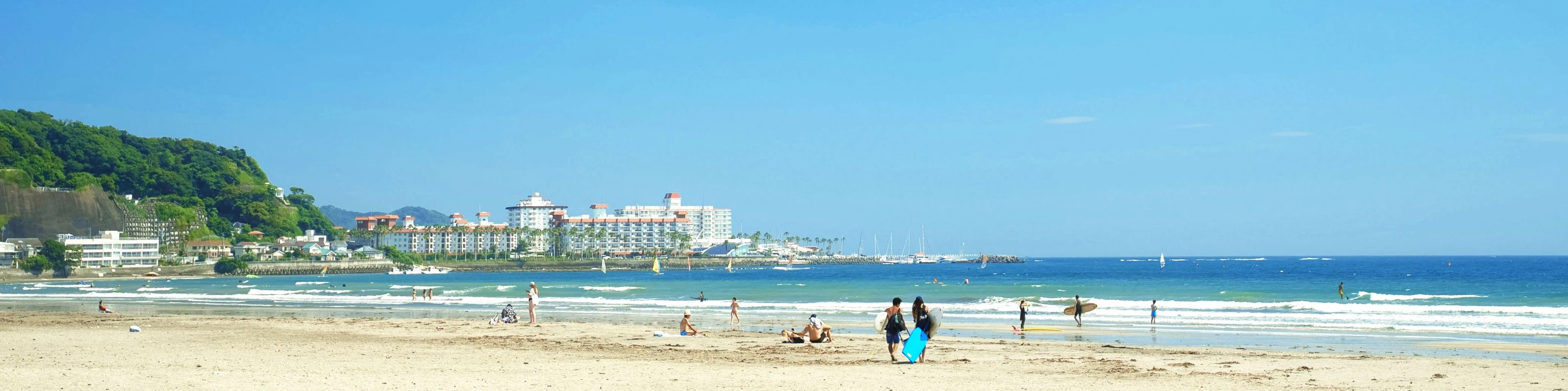 大きな道路を横断することなく、材木座海岸まで徒歩2分で到着します。