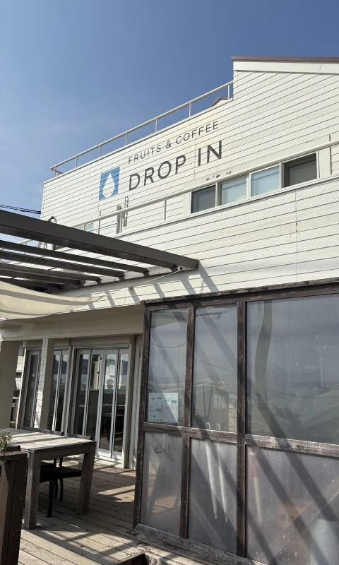 「DROP IN」は、海を見渡すテラス席で、全国から仕入れた旬の産直フルーツとこだわりのホットサンドが楽しめるカフェ。ナチュラルであたたかみのある雰囲気の中で、手作り感あふれるメニューが味わえます。ふらりと立ち寄っても、居心地のよさに思わず長居してしまう、そんな魅力のある場所です。